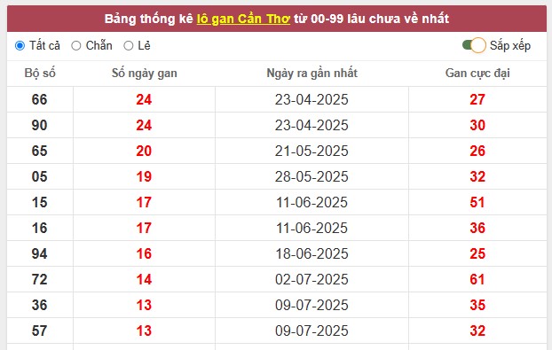 Dự đoán xổ số Cần Thơ ngày 15/10/2025 hôm nay đòi hỏi sự kết hợp giữa phân tích thống kê, tần suất xuất hiện của các cặp số và chu kỳ ra số trong nhiều kỳ quay gần đây. Bài viết này được tổng hợp dựa trên dữ liệu thực tế của những kỳ trước, giúp người chơi có thêm cơ sở để lựa chọn con số may mắn cho kỳ quay thưởng sxmb, xsmn đài CT ngày 15/10 tới.